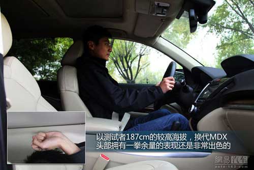 雖然尺寸方面相較競品沒有優勢可言,但實際測試中換代MDX前兩排的空間表現還是可圈可點的。身高187cm的高標測試者前排座椅調整到最低位置,頭部擁有一拳余量;中排頭部擁有三指空間,腿部擁有一拳余量。