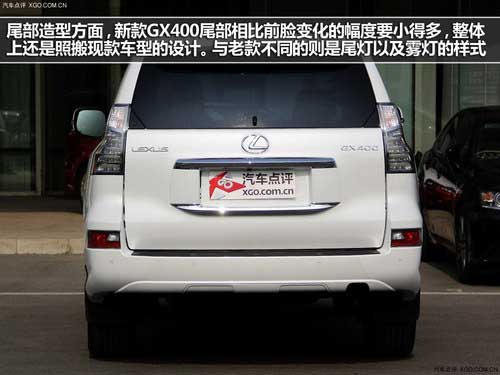尾部造型方面,新款GX400尾部相比前臉變化的幅度要小得多,整體上還是照搬現款車型的設計。與老款不同的則是尾燈以及霧燈的樣式,新款GX400的尾燈將老款櫻桃紅色的尾燈改為了透明款式,霧燈框則是由豎狀改為橫狀。