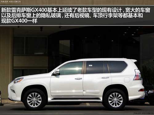 新款雷克薩斯GX400基本上延續了老款車型的現有設計,寬大的車窗以及后排車窗上的隱私玻璃,還有后視鏡、車頂行李架等都基本和現款GX400一樣。