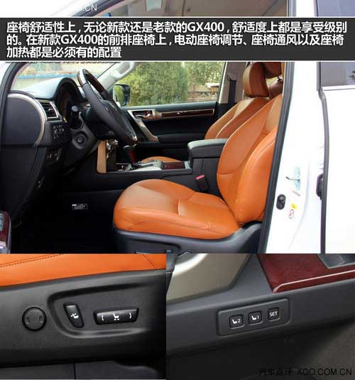 _ueditor_page_break_tag_座椅舒適性上,無論新款還是老款的GX400,舒適度上都是享受級別的。在新款GX400的前排座椅上,電動座椅調節、座椅通風以及座椅加熱都是必須有的配置,主駕駛座椅還帶有座椅記憶功能,強悍的舒適性誰坐誰知道。