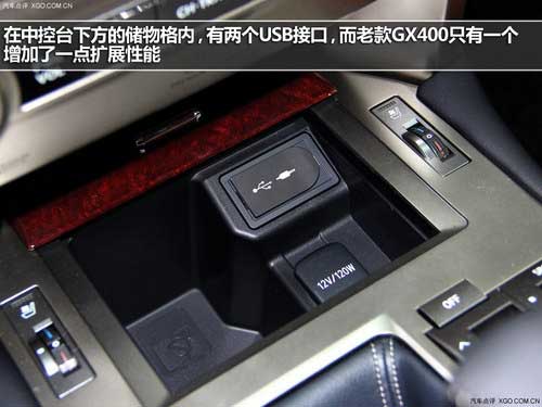 在中控臺下方的儲物格內,有兩個USB接口,而老款GX400只有一個,增加了一點擴展性能。