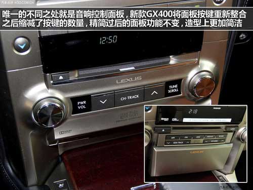 唯一的不同之處就是音響控制面板,新款GX400將面板按鍵重新整合之后縮減了按鍵的數量,精簡過后的面板功能不變,造型上更加簡潔。