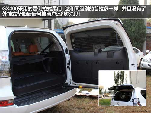 GX400采用的是側拉式尾門,這和同級別的普拉多一樣,并且沒有了外掛式備胎后后風擋窗戶還能夠打開。