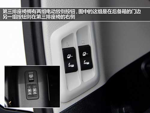 同時,第二排座椅還可以按比例放倒,只需要拉動座椅邊上的拉手即可。雖然擁有第三排座椅以備不時之需,但在一般情況下還是更適合放倒來儲存物品的。有意思的是,第三排座椅采用的電動座椅調節,而第二排卻是手動調節方式。