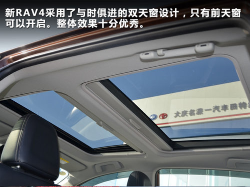 新RAV4后排采用平直設(shè)計(jì),沒有中間凸起,方便了后排中間乘客,提高了舒適性。雙天窗設(shè)計(jì),很好得迎合了國人對全景天窗喜愛的需求。前天窗可以開啟,整體效果十分優(yōu)秀。