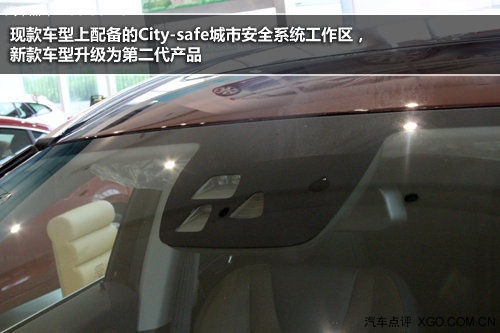現款車型上配備的City-safe城市安全系統,新款車型升級為第二代產品,系統工作速度區間擴展至0——50km/h,探測目標也增加到行人和騎車的人。