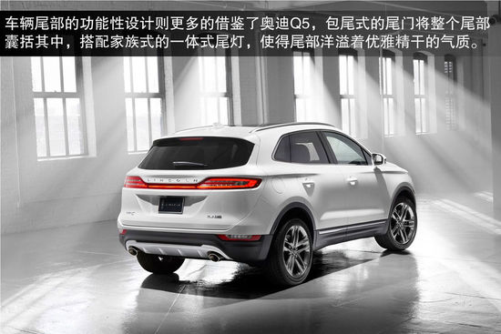 車輛尾部的功能性設(shè)計(jì)則更多的借鑒了奧迪Q5,包尾式的尾門將整個(gè)尾部囊括其中。而一體式的尾燈則早在上世紀(jì)就已經(jīng)成為了林肯車型的家族化配置,再加上后保險(xiǎn)杠下方的銀色護(hù)板,MKC的尾部倒是要比Q5那個(gè)有些塌陷的設(shè)計(jì)要精干很多。