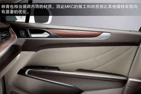MKC擁有豐富的配置。標(biāo)準(zhǔn)配備19英寸拋光輪轂。車道輔助、盲區(qū)警示、自動(dòng)泊車、主動(dòng)巡航系統(tǒng)、后排安全帶氣囊燈均為標(biāo)準(zhǔn)配備,體現(xiàn)出豪華品牌應(yīng)有的價(jià)值。此外,林肯也極為強(qiáng)調(diào)內(nèi)飾的材質(zhì),因此MKC的做工和材質(zhì)相比其他福特車型均有顯著的優(yōu)化。