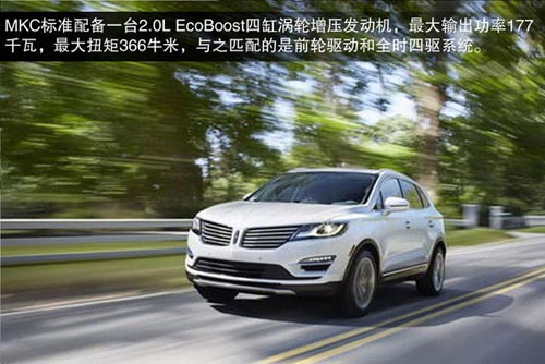 2.3升EcoBoost發(fā)動(dòng)機(jī)也將會(huì)搭載在下一代福特野馬上面。MKC不會(huì)提供手動(dòng)變速器作為選擇,一款六前速自動(dòng)變速器為標(biāo)準(zhǔn)配備。除此之外,MKC使用一套全時(shí)四驅(qū)系統(tǒng),該系統(tǒng)與銳界所使用的相同。