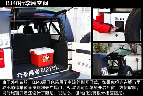 由于外掛備胎,BJ40尾門也采用了主流的側(cè)開門式,如果你擔(dān)心在城市里狹小的停車位無法順利開啟尾門,BJ40則可以單獨開啟后窗,方便取物。同時尾窗開啟還設(shè)計了阻尼,很貼心,但尾門沒有設(shè)計相應(yīng)阻尼。
