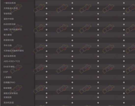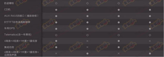 全系標配:安全帶未系提示、前/后排側氣囊、發動機電子防盜、遙控鑰匙、ABS防抱死、制動力分配、剎車輔助、牽引力控制、車身穩定控制、RMI防側翻輔助系統、節油/運動/雪地行車模式、多功能方向盤、日間行車燈、副駕駛位電動調節等配置。智能科技配置方面:新車裝備了無盲區泊車輔助系統、豪華影音系統、NIVOMAT自適應平衡系統等。