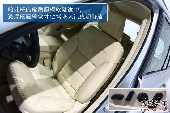 在上屆廣州車展上我的同事已經對哈弗H8進行了體驗,其車內空間很奢侈。寬大的車體保證了寬敞的車內空間。前排空間充足,駕駛者不會感到絲毫的壓抑感。H8的后排空間更為寬大,身高176cm的體驗者乘坐腿部空間和主流中級車相當有兩拳以上的余量,頭部空間有一拳的空間。