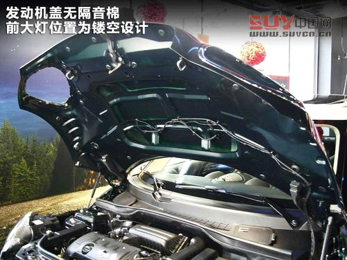 發動機蓋上并無隔音棉,雖說復古但是對于這個價位的車,就略顯不足。很有特色的是在發動機蓋上扣出來前車燈的位置,使得車燈四周均由發動機蓋環繞。