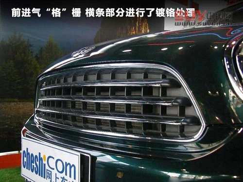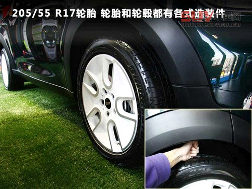 前大燈為氙燈設計,保證了亮度,隨轉系統的引入也提高了行車的安全。在大燈的外側還嵌有有MINI的銘牌。前進氣格柵的造型也頗顯野性,完全是格狀的進氣格柵,橫條部分進行了鍍鉻處理。