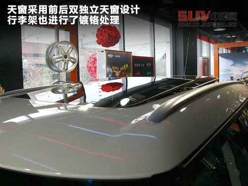 輪轂方面又8種輪轂可以選色,顏色也有4種可以選擇,上圖輪轂不是標配輪轂,標配輪轂為五星雙輻銀色輪轂。車輪的上下活動范圍比較小,由此看出這是一款定位于城市的SUV,并不能拿去越野。