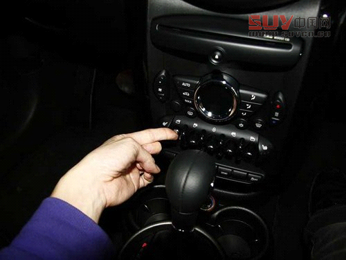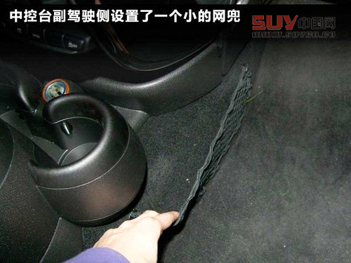 駐車制動器的拉桿外型設計很獨特,使用起來別有感覺。副駕駛側有網兜,提高了空間的利用性,中央扶手箱的容積就略顯狹小,平時用來放些票據是不錯的選擇,畢竟MINI的儀表臺處都沒有放置物品的地方。