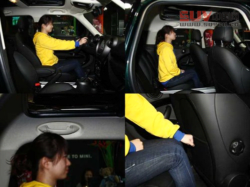 就算一款小車,空間也得到了保證,雖說模特比較嬌小,但我們也看到了,正常體型的做進去也沒什么問題。畢竟MINI的設計理念是將80%的空間留給乘客,設計之初就是為了一家四口加一條狗的空間準備的,何況曾今有過將25個塞到一輛MINI車中的錄,但也不要奢求空間會有多大畢竟全車長才4097mm車寬1789mm。