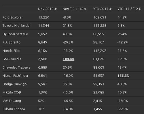 福特Explorer在三排座的大型跨界車中仍然獨占鰲頭。它十一月份銷量下跌,但鑒于全年僅剩下最后一個月,它的銷量排名也可能穩(wěn)居第一。接下來的四個名次競爭激烈,豐田漢蘭達、現(xiàn)代圣達菲、起亞索蘭托和本田Pilot之間展開了激烈的角逐。本田Pilot11月銷售不佳,排名下降到第五位。但在年度排行榜上,該車位列第二名。