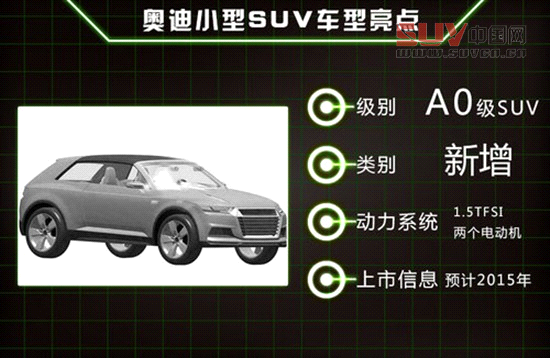 預(yù)計2015年將引入的奧迪小型SUV,與下一代A1同平臺不僅可以減少成本和時間,搭載的全新混合動力系統(tǒng)也使奧迪逐步邁向新能源領(lǐng)域,品牌影響力得到進(jìn)一步提升的同時,也為奧迪未來在SUV市場的發(fā)展奠定了更廣泛的市場基礎(chǔ)。