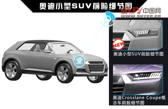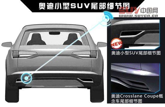 德系傳統(tǒng)三強(qiáng)中奧迪的產(chǎn)品序列已經(jīng)趨于完善,涵蓋了從A1至R8一系列車型。不過在SUV產(chǎn)品線中,奧迪目前在小型SUV領(lǐng)域至今無相應(yīng)產(chǎn)品推出。在去年的巴黎車展上,奧迪曾亮相過一款Crosslane Coupe概念車,該車的設(shè)計為未來奧迪小型SUV的藍(lán)本。近日網(wǎng)通社獲取了一組奧迪全新小型SUV的國內(nèi)申報圖和部分信息,該車將基于下一代奧迪A1的MQB平臺打造,動力方面搭載一臺1.5TSI三缸渦輪增壓發(fā)動機(jī)和兩臺電動機(jī)組成的混動系統(tǒng)。據(jù)悉,奧迪首款小型SUV有望在2015年引入國內(nèi)銷售。