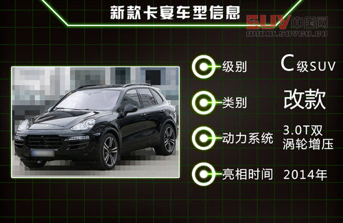 新款卡宴預計將于2014年正式亮相,與現款車型配置基本保持相同。動力系統是新卡宴的最大變化,其有望搭載一款較小排量的3.0T雙渦輪增壓發動機,以取代現款卡宴S車型所采用的4.8L自然吸氣引擎。全新發動機最大功率308kW,峰值扭矩達到了520N•m,較現款最大功率294kW,最大扭矩500N•m的4.8L引擎分別高出了14kW和20N•m。