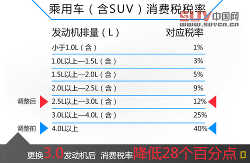 新引擎的應用除給新款卡宴帶來動力的提升外,更低的排量也將為新款車型帶來更低的售價?,F款卡宴S所搭載的4.8L發動機要繳納40%的消費稅,而全新車型所搭在的3.0L增壓引擎的稅率僅為12%,降低了28個百分點。