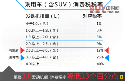 目前Jeep大切諾基和牧馬人,入門車型均采用了3.6L自然吸氣發動機,而隨著小排量趨勢的發展,上述兩款車型均將在華引入搭載最大功率123kw,最大扭矩240N·m的3.0L發動機。而得益于3.0L小排量發動機的應用,使上述兩款車型在華的消費稅降低了13個百分點。