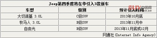 根據克萊斯勒集團所公布的數據,截至2013年3月,旗下Jeep品牌已在華實現連續27個月的同比增長,其中1月份在華銷量更是增長了53%。隨著成都車展的臨近,Jeep品牌也將于今年第四季度在華引入3款新車,這將為銷量的持續增長起到積極作用??巳R斯勒(中國)汽車銷售有限公司內部人士向編輯透露:“Jeep將在今年10月底推出大切諾基3.0L車型,11月初推出牧馬人3.0L車型,并將在12月(或11月底)正式推出自由光車型。”