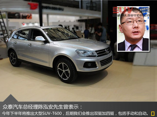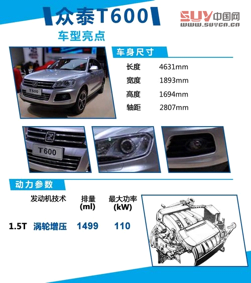 在2013上海車展期間發布的眾泰T600,整個車身依據城市SUV風格而打造,其長寬高分別為4631/1893/1694mm,軸距達到2807mm,已經屬于中大型SUV,作為眾泰旗下首款中大型車,新車將于年底推出,其內部空間讓人期待。