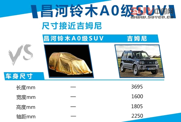 而鈴木汽車在小型車以及微車制造方面一直具有十足的優勢,尤其旗下小型SUV吉姆尼頗受消費者歡迎。而作為其在華合作伙伴,昌河汽車也將利用這一優勢,在小型車領域展開鋪墊。據悉,其將推出的A0級SUV將與進口鈴木旗下的吉姆尼車型大小相似。如圖所示,吉姆尼長寬高均符合了A0級車型的特點,軸距在2250mm左右。