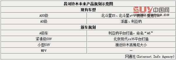 昌河鈴木此前宣布的9+9產品戰略是指其將推出9款改款車型,和9款全新車型。隨著SUV市場的日益火熱,昌河鈴木也將進軍SUV領域,其中將包括A0級SUV,以及一款基于現代ix35打造的緊湊級SUV,進一步豐富昌河鈴木的產品序列。