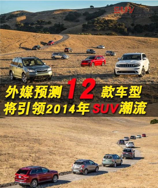 隨著近年來SUV的興起,各汽車廠商都在竭力把握這一潮流,紛紛加快SUV車型的推出及升級,SUV已是一支不可忽視的力量。SUV融合了當今世界汽車制造的技術,不但具有轎車的舒適性,還有適應各種復雜路況的越野性,因此受熱捧理所當然。眾多廠商推出SUV的細分了SUV車型的市場,也開創細分市場格局,從而挖掘市場的消費潛力。近日,海外媒體預測了將引領2014年SUV市場潮流的12款SUV,讓我們一睹為快。