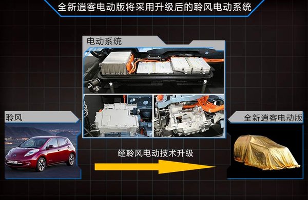目前新款聆風搭載了一款最大功率80kw的電動機,并配有48個鋰電池組,使該款車型最大續航里程達到了199公里。同時該款車型所配備的6.6kw車載充電器可使其在4小時左右完成充電。未來逍客電動版車型所采用的電動系統將基于聆風該套裝置進行升級,從而有效節約生產成本,并通過技術的升級將使續航里程有所增加。