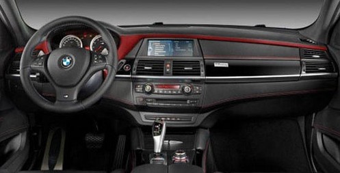 內飾方面,新車整體采用的是黑色調,并在中控、座椅、功能按鍵背光燈等細節方面采用了紅色搭配。同時中控上采用的烤漆面板上還鑲嵌有X6 M Desgin特別版標識。為體現專屬感新車裝配的是Merino高檔真皮座椅。