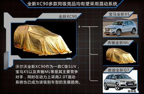 沃爾沃全新XC90車型定位為C級SUV,與其同級別的多款競品車型均有望采用混動系統(tǒng),其中包括寶馬全新X5、奔馳全新ML以及奧迪全新Q7等車型。此外在動力方面,采用2.0T混合動力系統(tǒng)也已成為該級別車型的發(fā)展趨勢。