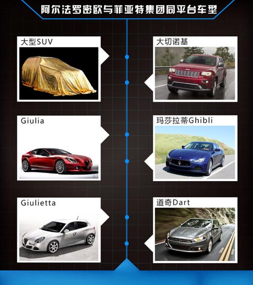在菲亞特-克萊斯勒集團中,旗下諸多車型都采用了相同平臺打造,以至于最大程度上減少成本與研發(fā)周期。除阿爾法羅密歐將推出的中大型SUV與大切諾基同平臺外,其未來將推出的C級轎車Giulia也與瑪莎拉蒂Ghibli出自同一平臺。而緊湊級轎車Giulietta也與道奇Dart出自菲亞特的CUSW平臺,從而實現(xiàn)平臺共通化的特點。
