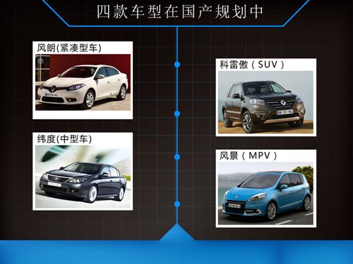 12月5日東風(fēng)集團宣布:東風(fēng)雷諾合資公司已通過國家發(fā)改委審批。歷時十年,雷諾國產(chǎn)項目終于塵埃落定。雷諾集團高級副總裁兼亞太區(qū)總裁GillesNormand先生表示:“中國市場擁有巨大潛力對于雷諾全球而言,中國市場至關(guān)重要。”根據(jù)東風(fēng)雷諾規(guī)劃工廠一期產(chǎn)能15萬臺,投產(chǎn)車型將包括SUV、電動車等多功能乘用車。