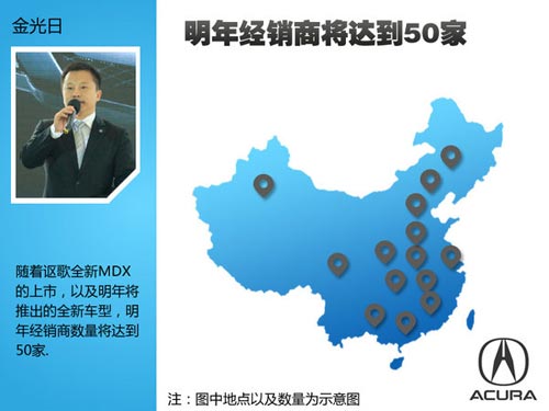 目前,各個豪華品牌均在發展經銷商渠道網絡,謳歌作為其中之一,其目前的經銷商渠道相比奔馳、奧迪、英菲尼迪等均有著不小的差距。在陸續推出新車型后,謳歌在也加速渠道建設,其將進一步擴充經銷商網絡,“今年年底謳歌經銷商數量將達到40家,明年年底將實現50家經銷商。”金光日表示。