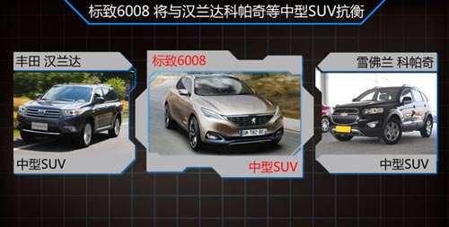 國內SUV市場持續升溫,其中大尺寸的中型SUV憑借大空間和良好的通過性等優勢,成為時下的熱銷車型。如北京現代-全新勝達、廣汽豐田-漢蘭達均已成這一細分市場的佼佼者。未來6008車型推出后,將與上述SUV車型展開競爭。