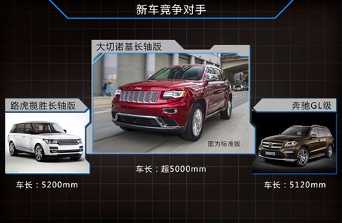 新車上市后,將與路虎攬勝長軸版和奔馳GL級等車型競爭。從尺寸上來看,其超過5米的車長將具備足夠的競爭力,將會為第三排乘客提供更充足的乘坐空間。相信憑借著Jeep品牌的影響力,其上市后將會占據(jù)高端SUV市場一定份額。