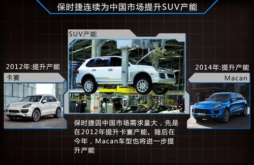 目前保時捷旗下的車型均在德國進行生產(chǎn),旗下?lián)碛兴箞D加特與萊比錫兩家工廠。全球銷量占比最大的卡宴則在萊比錫工廠生產(chǎn)。在確定投產(chǎn)入門級SUV Macan后,保時捷在萊比錫工廠附近耗資5億歐元,建立一座新工廠。該工廠年產(chǎn)能為5萬輛,并于今年2月開始正式投產(chǎn)。據(jù)了解,此前由于中國市場對于卡宴車型需求量很大,保時捷卡宴SUV的產(chǎn)能曾于2012年提升10%至20%。未來隨著中國市場對于SUV需求的提升,萊比錫工廠產(chǎn)能也將進一步提升。