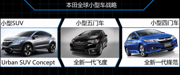 在推出首款小型SUV后,本田CEO伊東孝紳表示:“未來我們將開啟名為‘Global Compact Series’的全球小車計劃,以Urban SUV Concept、五門版飛度以及四門版鋒范三款小車形成全球小型戰略。”并表示,本田計劃在2016年在全球生產超過150萬輛的戰略小型車,并成為全球小型車的領軍者。