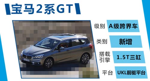 目前在寶馬擁有3系GT與5系GT兩款車型,未來2系GT的加入不僅擴充了GT家族的陣容,新車也將成為寶馬最入門的GT產品。據悉,2系GT將與全新MINI共同出自寶馬UKL前驅平臺,動力方面新車將搭載1.5T三缸渦輪增壓發動機,汽油版最大功率為90-165kw,柴油版為60-135kw,與發動機匹配的有望是8AT變速器。