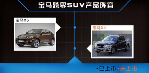 寶馬在推出X6后,成為了跨界SUV市場的開辟者,在去年舉辦的上海車展期間,寶馬X4概念車正式亮相,未來量產車型將成為寶馬入門跨界SUV。從概念車發布起不到1年時間,寶馬X4的量產車即將在日內瓦車展正式亮相,新車是基于X3平臺打造而來,并進行了輕量化處理,動力將搭載2.0T/3.0T兩款引擎,類似于X5與X6之間的關系。