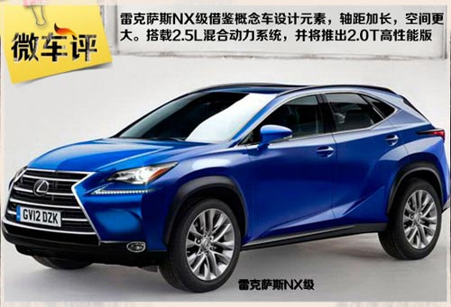 日前,一張雷克薩斯全新SUV NX級的效果圖現身網絡。該車預計將于2014年3月日內瓦車展發布,并于10月海外上市。新車價格約為3萬英鎊左右(折合人民幣約29萬元)。