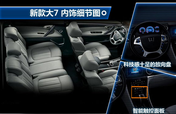 內(nèi)飾方面,新車與現(xiàn)款整體布局基本相同。方向盤新增了銀色的裝飾,黑銀兩色兩間科技范兒更足。變化最大的當(dāng)屬中控臺(tái),現(xiàn)款中控臺(tái)上的一大堆按鍵被一臺(tái)9英寸滑蓋式觸摸面板所取代,更加“高大上”。值得一提的是,新款大7 SUV將原本360度影像系統(tǒng)升級(jí)成了Active Eagle View(主動(dòng)鷹眼系統(tǒng))偵測(cè)功能進(jìn)一步加強(qiáng)。據(jù)悉,新車還對(duì)空調(diào)和娛樂系統(tǒng)進(jìn)行整合,操作更加便捷。