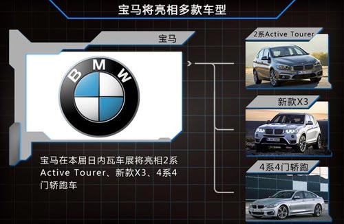 寶馬所要首發(fā)的三款車型中Active Tourer是2系家族中,繼雙門轎跑車之后的第二款產(chǎn)品。新車型將采用前輪驅(qū)動配置,從而滿足客戶對緊湊型轎車在多樣性和功能性方面的需求。4系Gran Coupe是基于4系Coupe打造的四門轎跑,這也使得4系家族的成員數(shù)量擴(kuò)充至4名。中期改款的X3也是一大看點(diǎn),新車不僅在前臉設(shè)計(jì)上逐漸趨向于寶馬最新的家族設(shè)計(jì),且還增添了柴油與汽油版后驅(qū)車型。