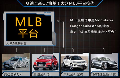 根據大眾集團此前所公布的計劃,未來旗下所有品牌的車型均均將基于四大模塊化平臺打造。這其中奧迪Q7則將使用MLB縱置發動機平臺,未來該車將與換代的奧迪Q5、大眾途銳以及保時捷卡宴共同開發。據了解,換代奧迪Q7或將在明年二季度正式發布,之后在上市后將有望同期引入中國市場。