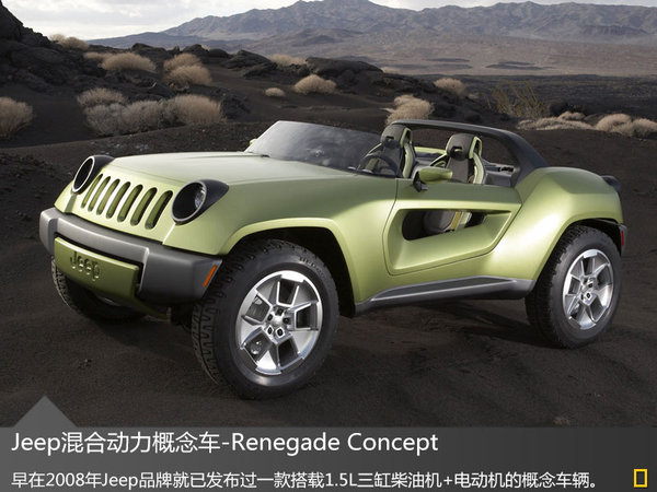 早在2008年Jeep就曾發布一款名為“Renegade”概念車,該車首次使用了一臺1.5L的三缸柴油發動機,一臺可以續航64公里的電動機,總輸出功率達到了200千瓦,在保證了動力性能的同時油耗也只有5.6L/100公里,該車將是Jeep未來動力方面的發展方向。次年便又推出愛國者EV(現已更名為:自由客)和牧馬人EV兩款車型,其續航里程達到了650公里。