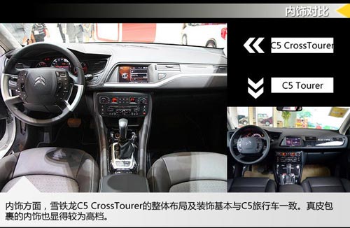 內飾方面,雪鐵龍C5 CrossTourer的整體布局及裝飾基本與C5旅行車一致。真皮包裹的內飾也顯得較為高檔,并為突出個性化定位,真皮座椅還可能有棗紅或檀紫色兩種顏色挑選。此外,腳墊上專門打上了有“CrossTourer”的全新標識以彰顯個性。雪鐵龍C5 CrossTourer面世后將同大眾邁騰Alltrack、歐寶英速亞四驅版等車型進行競爭。而隨著國內旅行車的日益升溫,相信這類兼具旅行車大空間以及跨界車良好通過性的“新物種”,會被更多人關注。